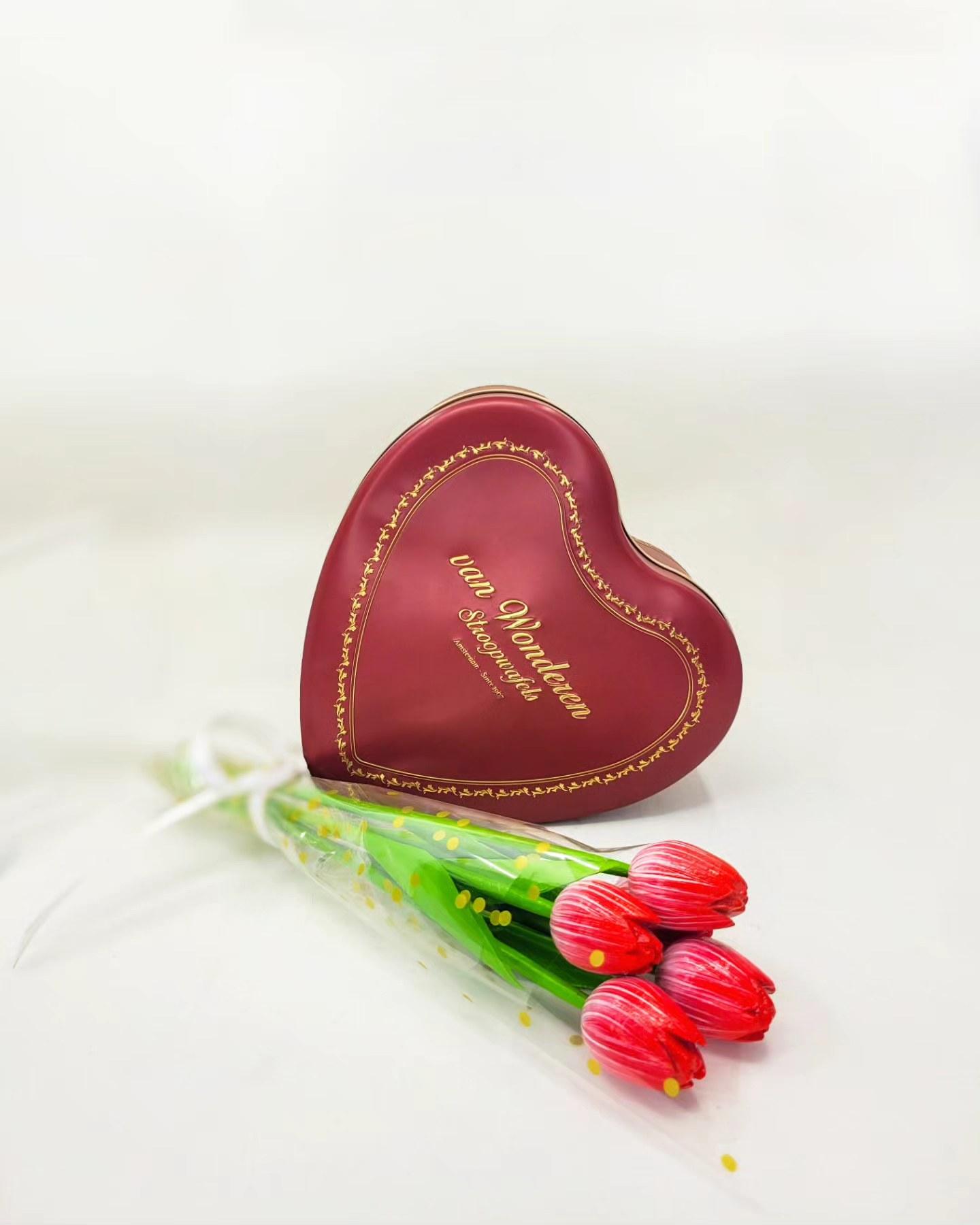 Eternal flowers & van Wonderen stroopwafels with toppings in a heart-shaped tin, limited edition ❤️